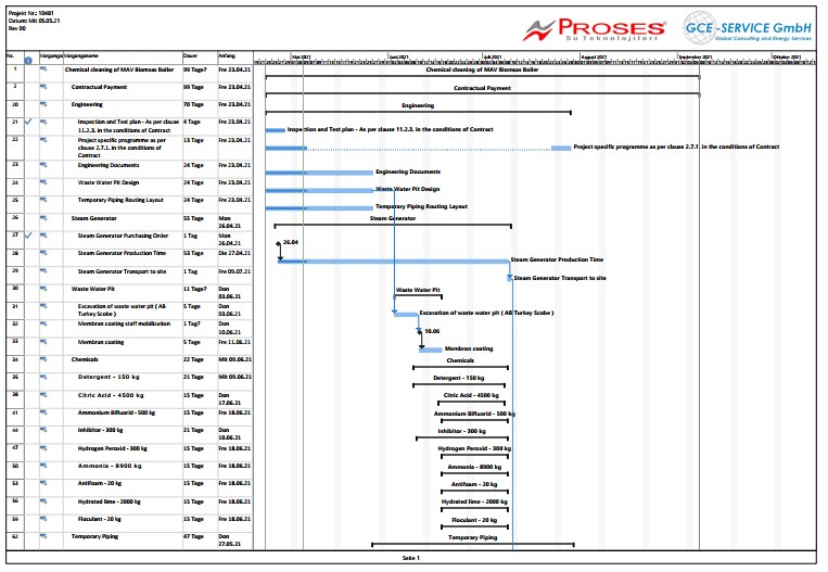 Yerli ve Yabancı Kazan İmalatçı firmaları ve halihazırda çalışan Termik Santrallarda Proses Su Teknolojileri AŞ. ve Alman GCE Service GmbH olarak 2019 yılından bu yana ortak projeler gerçekleştirmektedir. Kimyasal Yıkama ve Buhar Blöfü projeleri, Alman VGB standardı S-513 uyarınca, anahtar teslimi yapılmaktadır.
