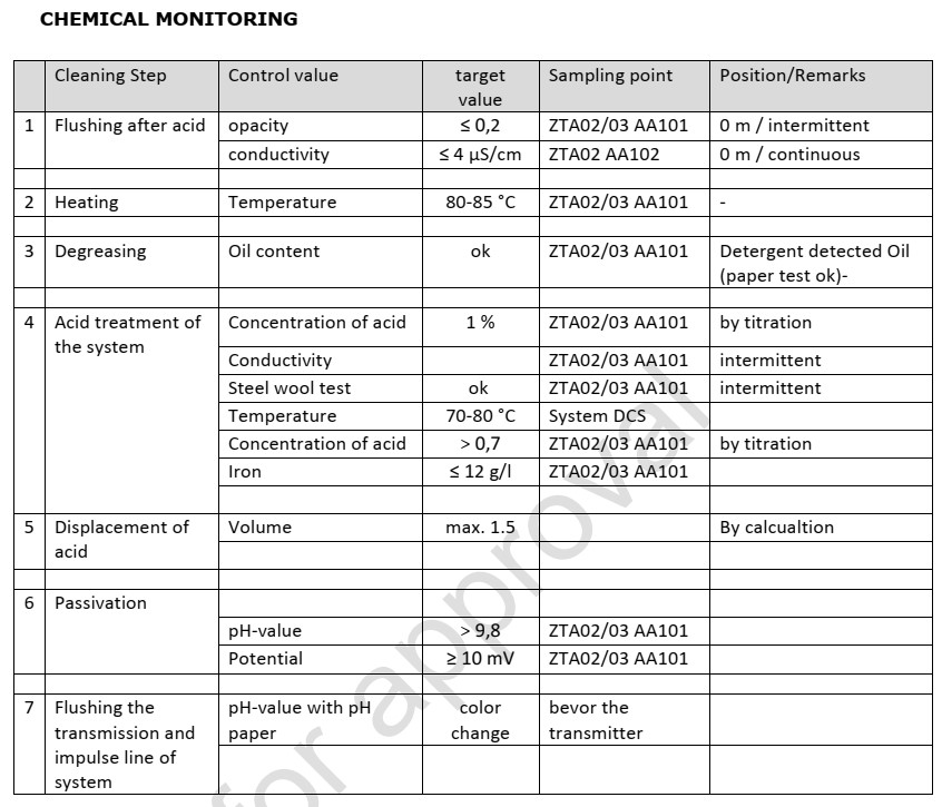 c.Kimyasal yıkama prosedürü, labaratuvar çalışmaları VGB S-513 standardı uyarınca tamamlanır.