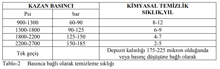 Bir kazanda kimyasal yıkamaya karar verebilmek için borularda depozit miktarı testi yapılır ve kazandaki kirlilik miktarı belirlenir. Bu sonuca göre çok kirli ise hemen kimyasal yıkama, orta kirli ise ilk revizyon döneminde kimyasal yıkama programı yapılır. Temiz ise yıllık revizyon periyotlarında boru numuneleri alınır ve kirlilikteki artış düzenli olarak izlenir.